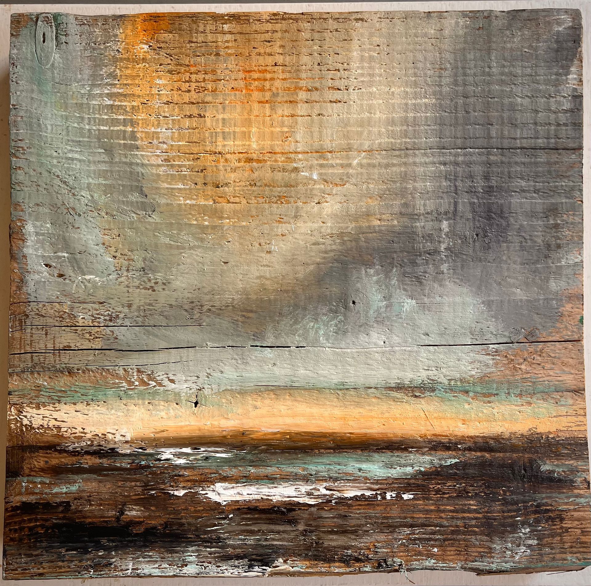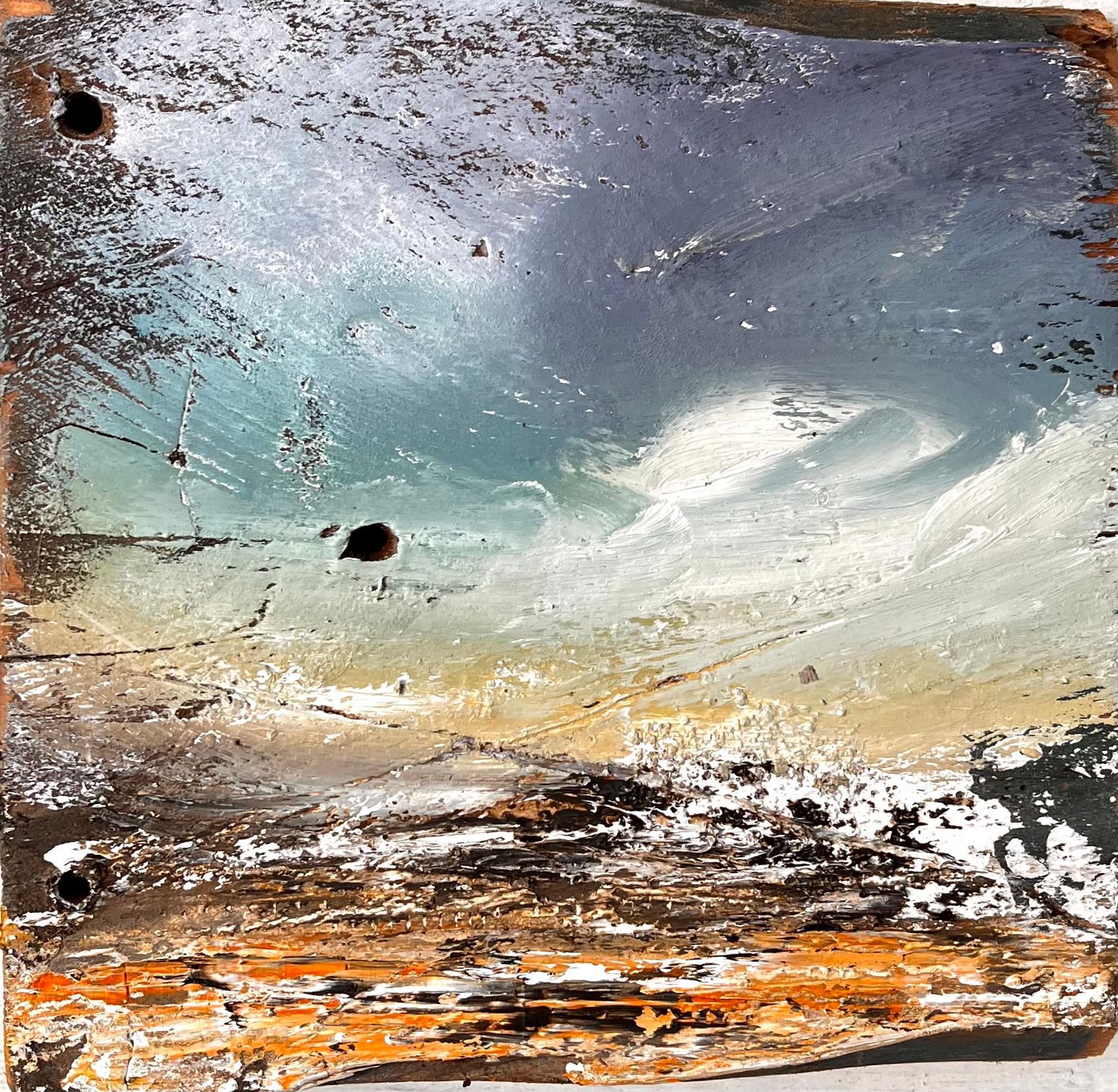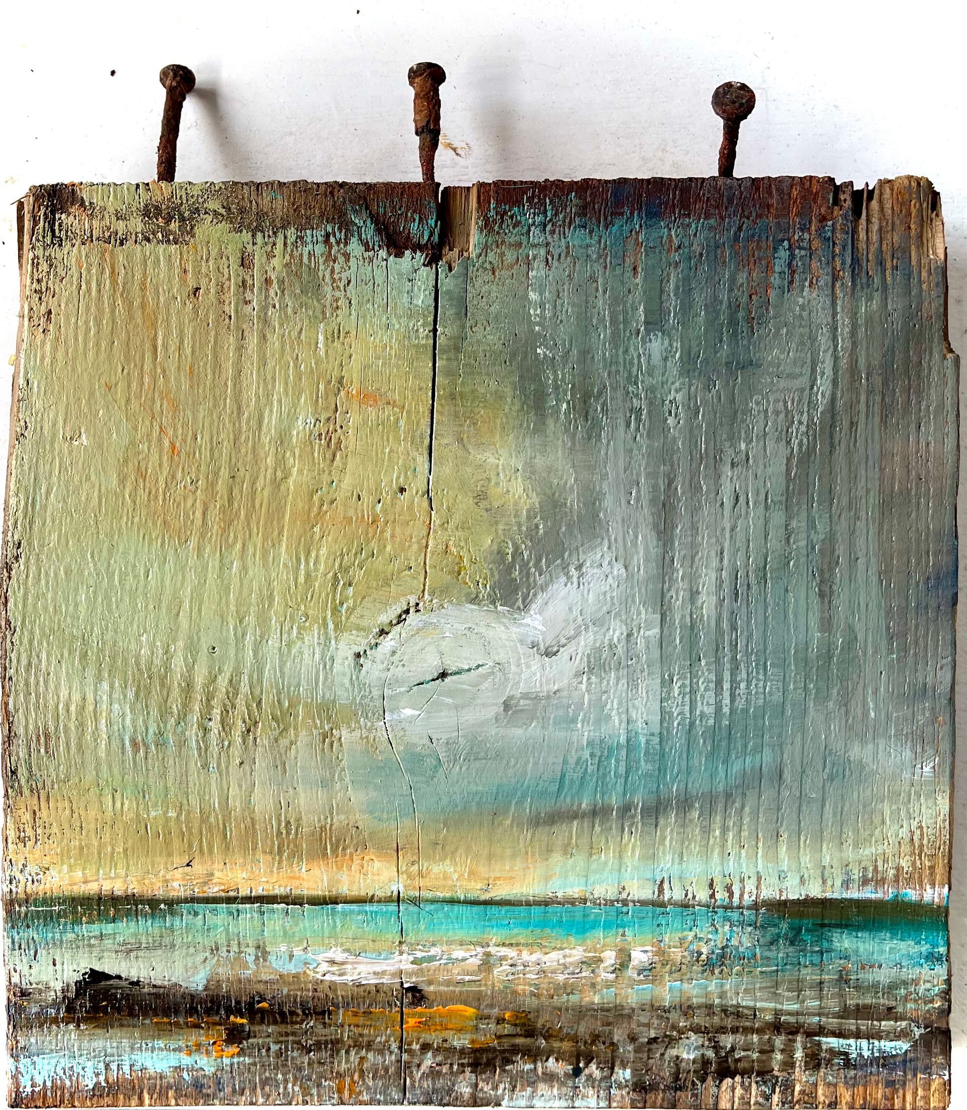 Soms vind ik mooie stukken hout achter de zeedijk, sommige lenen zich er voor om op geschilderd te worden, zo ontstaat mijn Jut-Art. Ik moet de stukken zelf vinden en ze moeten hier achter de dijk in Westhoek gevonden worden.